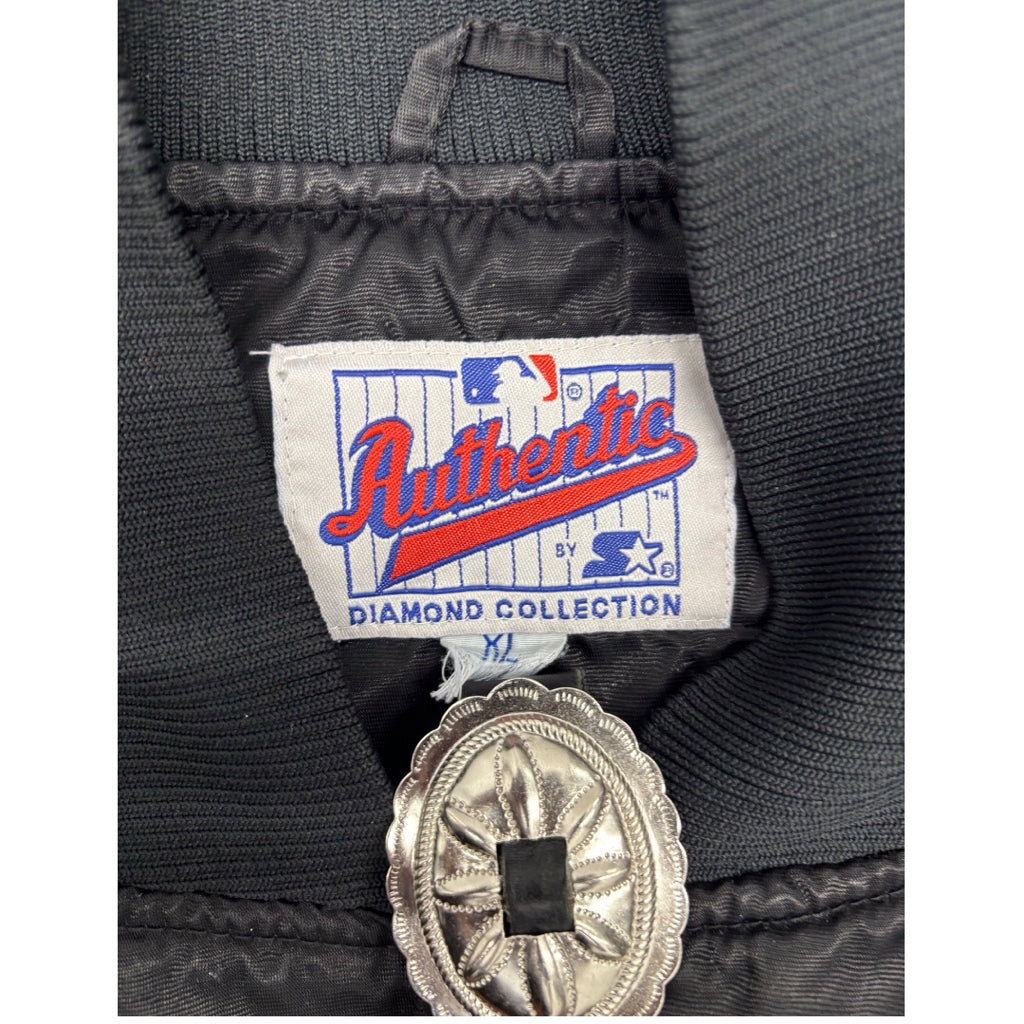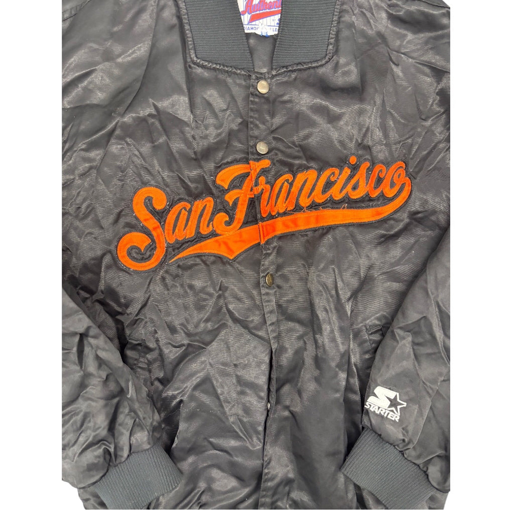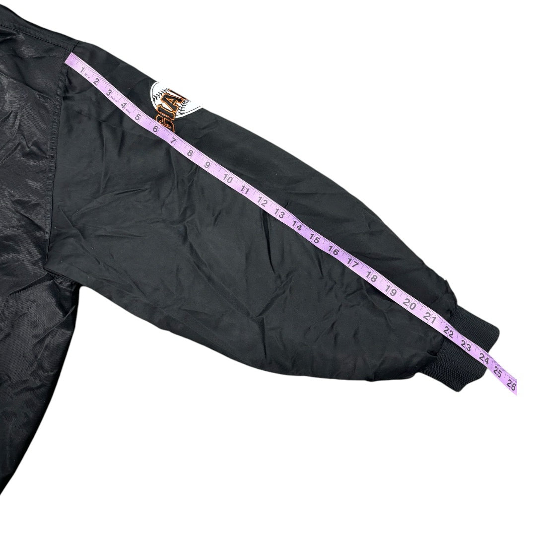 1990’s Authentic By Starter Black San Francisco Giants Orange Script Full-Snap Spellout Satin BomberJacket Sz XL