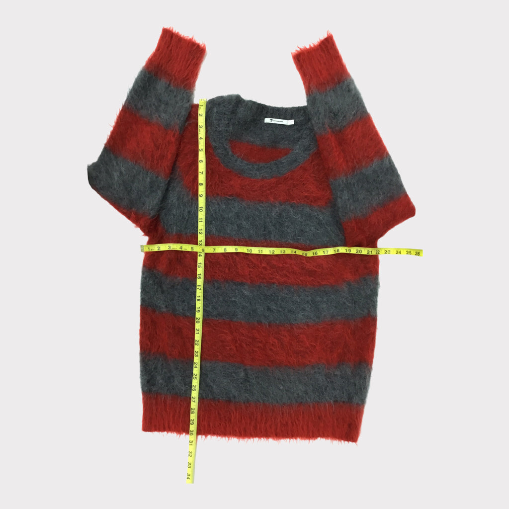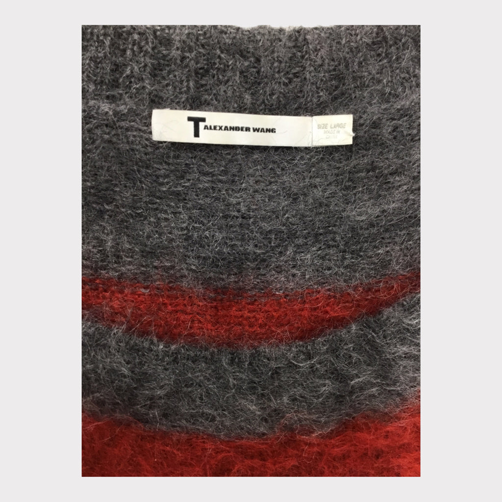 ALEXANDER WANG Mohair Stripped LS Sweater Size Large Red Gray Casual Designer