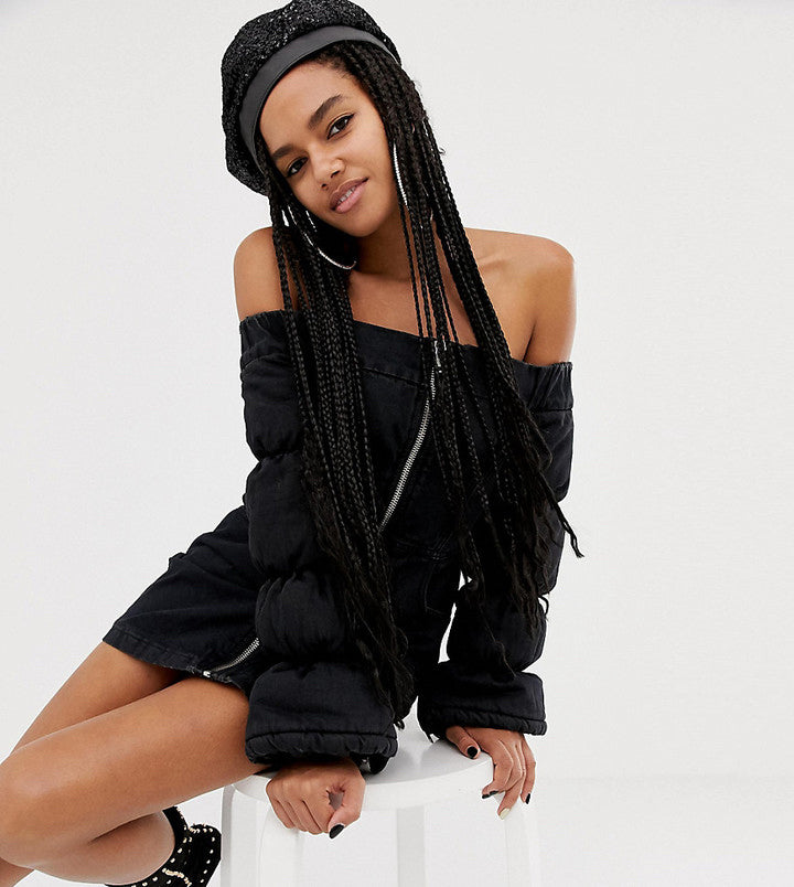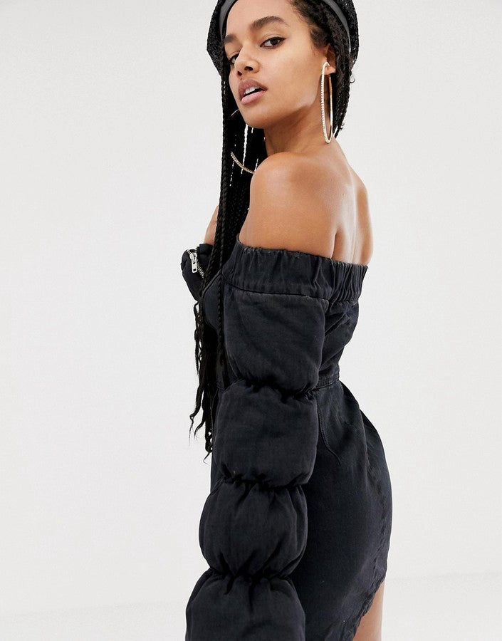 NWT Asos X LaQuan Smith Black Padded Off Shoulder Bardot Dress Denim Wmns Sz 6