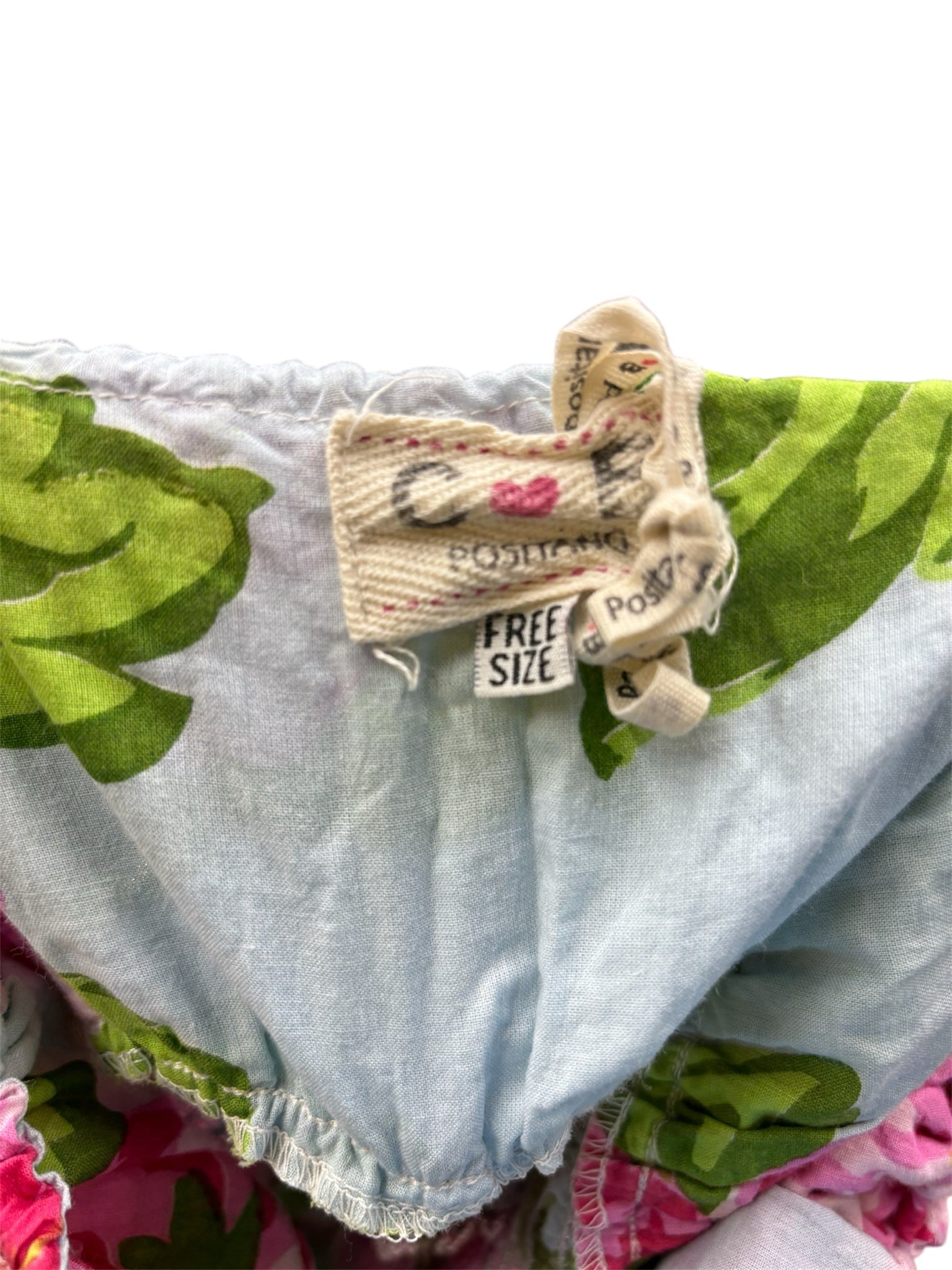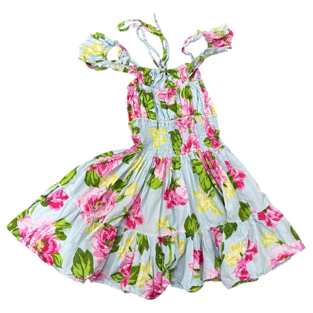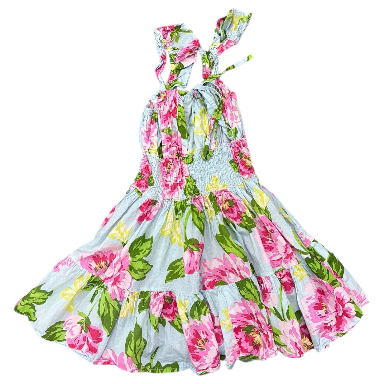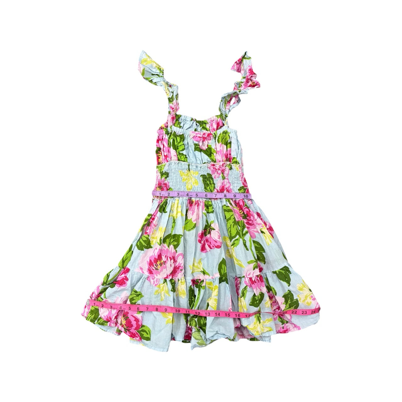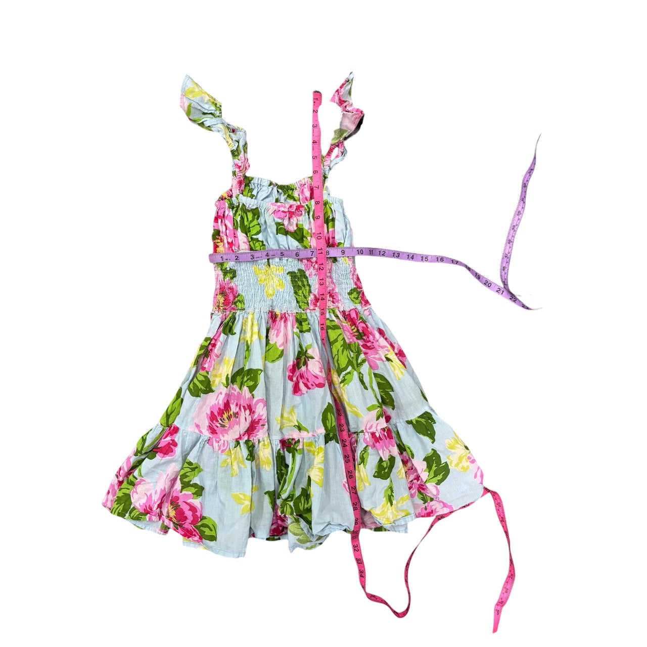 CB POSITANO Pink Yellow Flower Pattern Ribbed Blue Dress Sz XS
