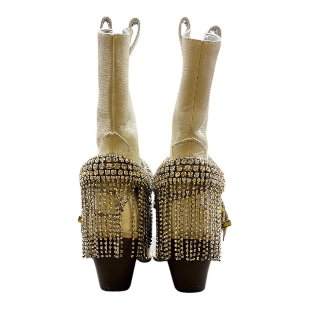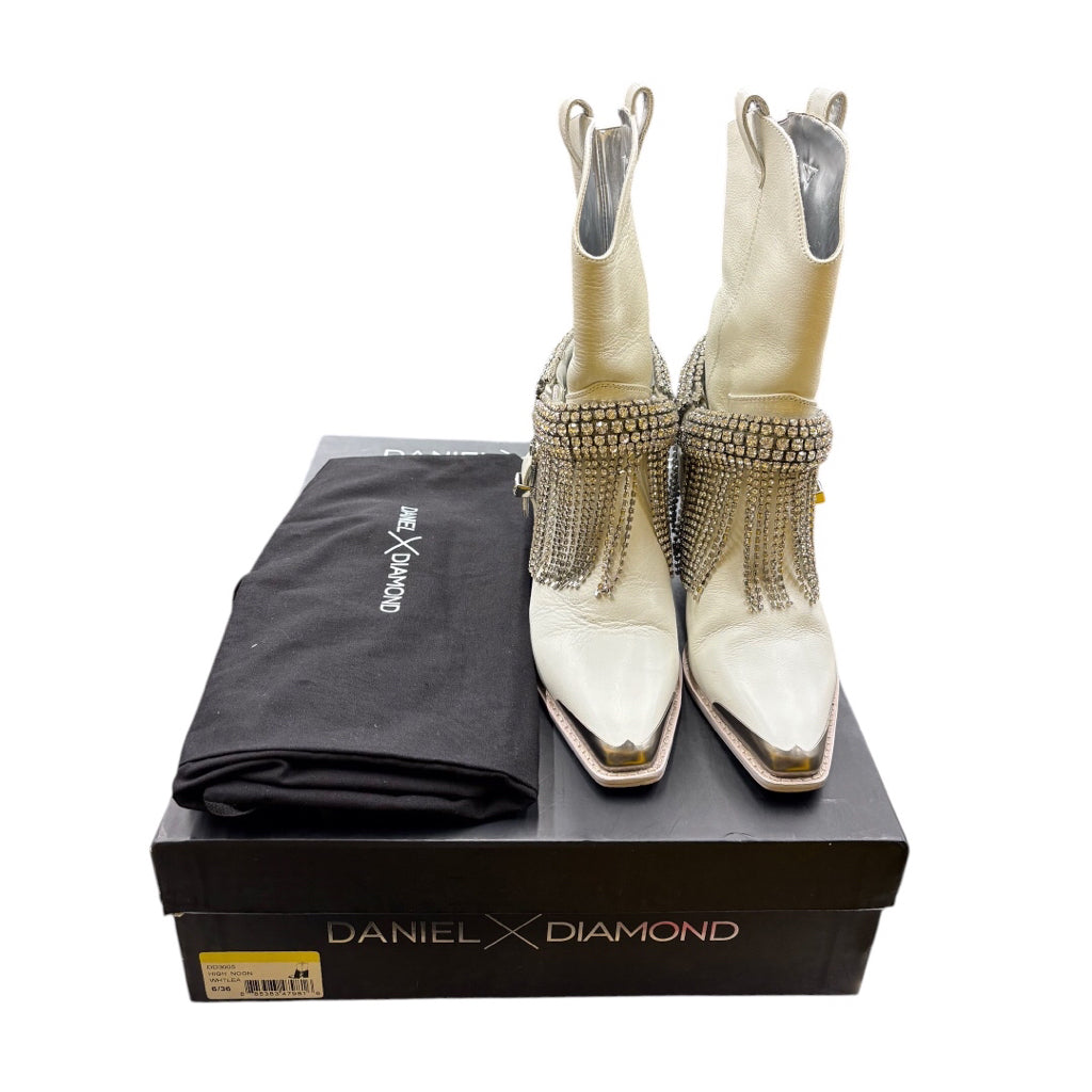 Daniel x Diamond High Noon Crystal-Harness White Western Heel Booties Shoe Wmns Sz 6 Boots