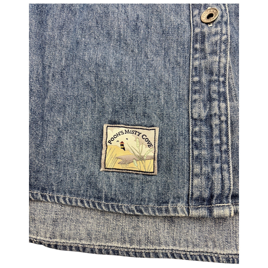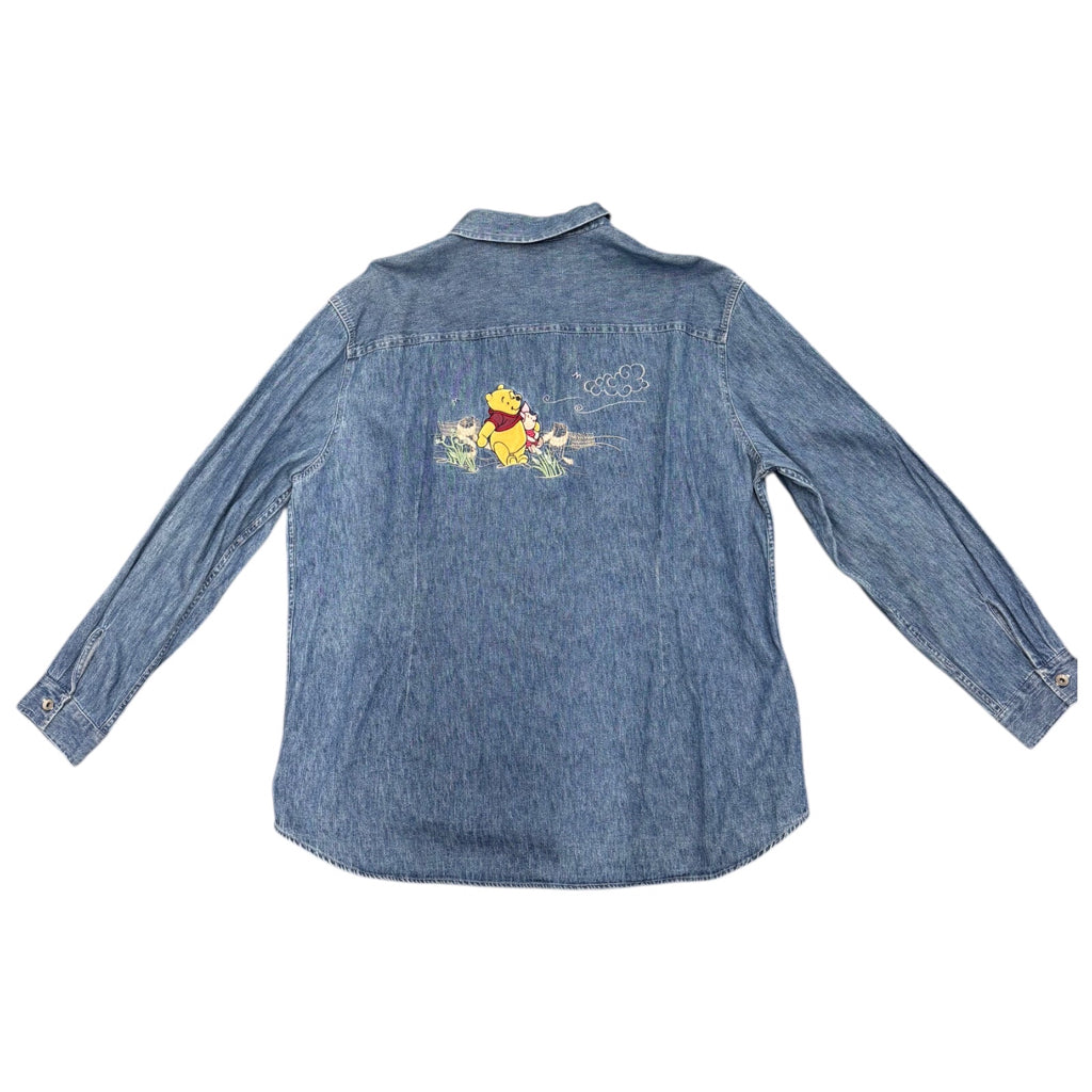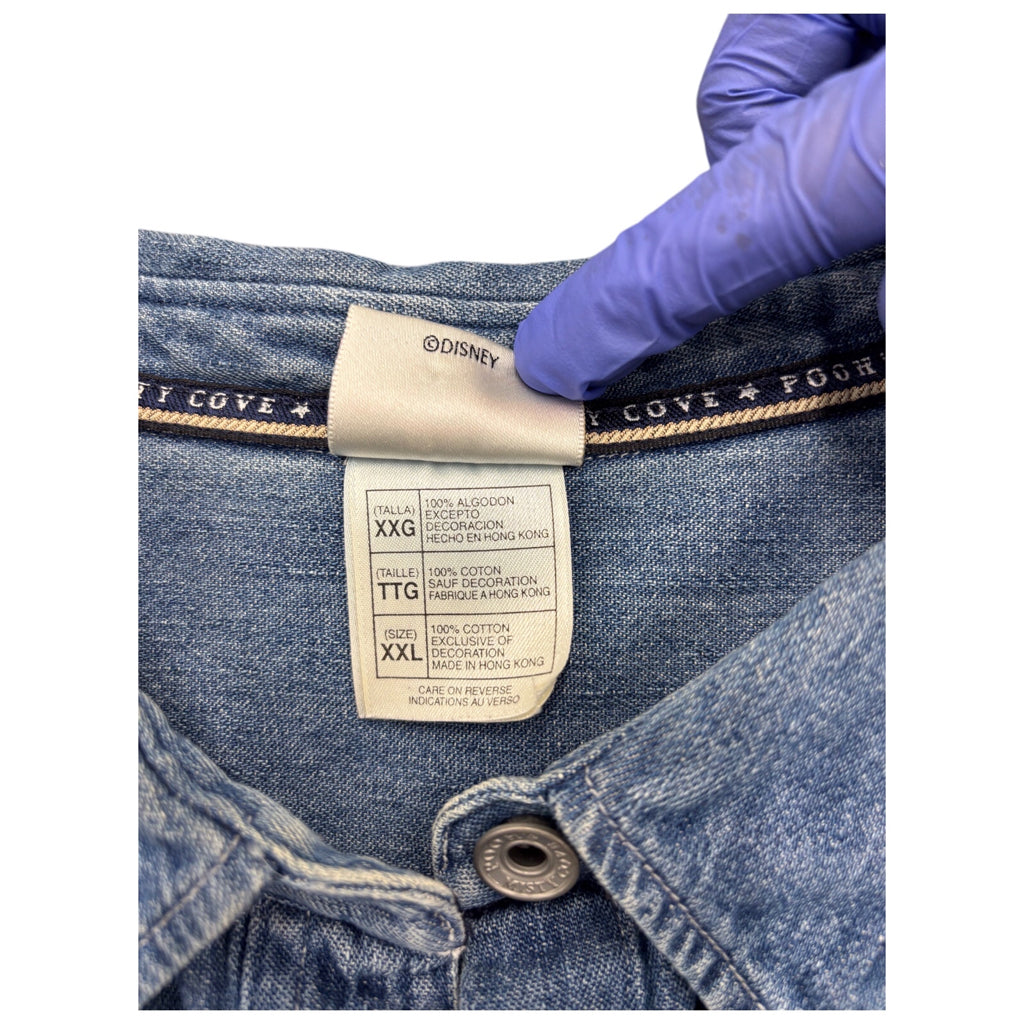 DISNEY Mens Vintage Y2k Embroidered Winnie the Pooh Blue Denim Long Sleeve Button Sz XXL
