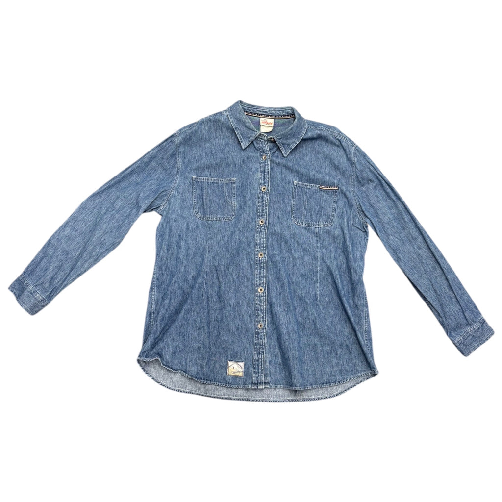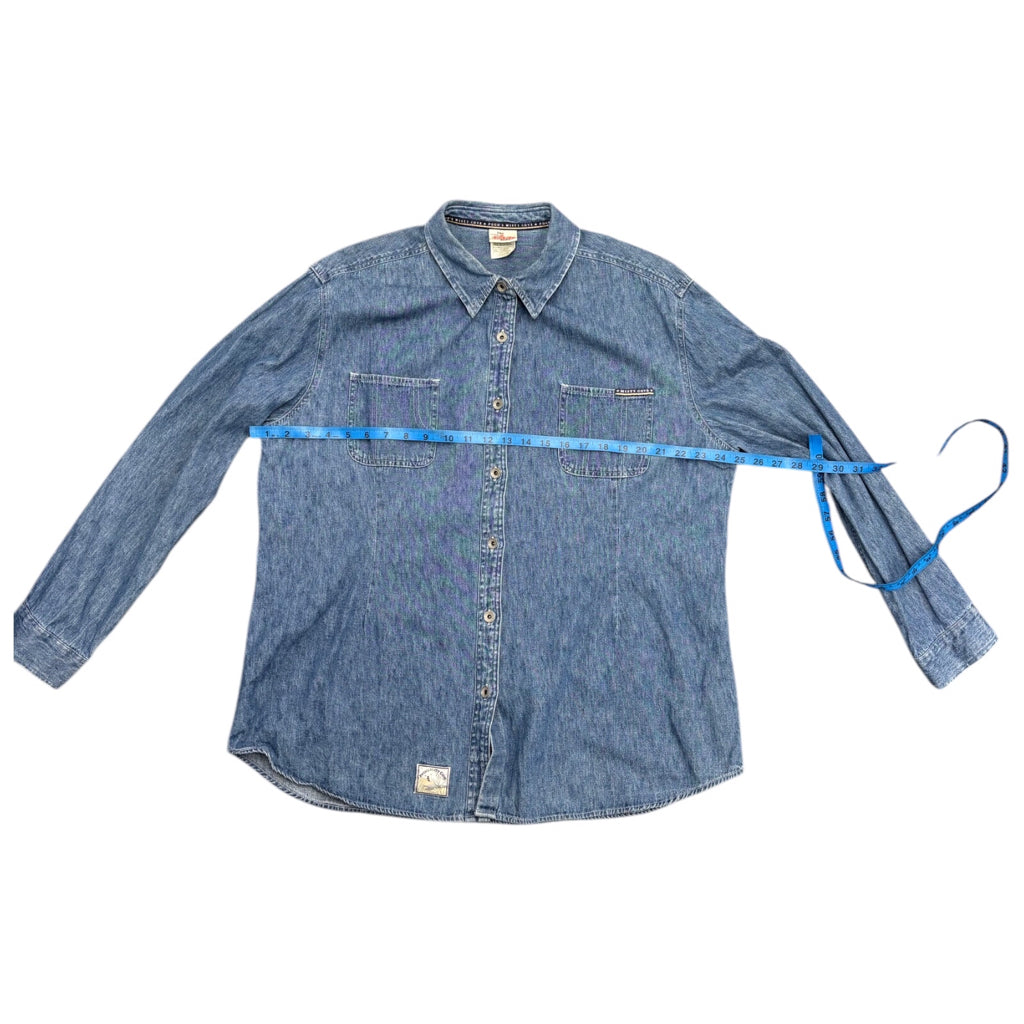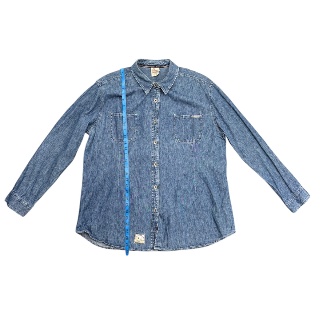 DISNEY Mens Vintage Y2k Embroidered Winnie the Pooh Blue Denim Long Sleeve Button Sz XXL
