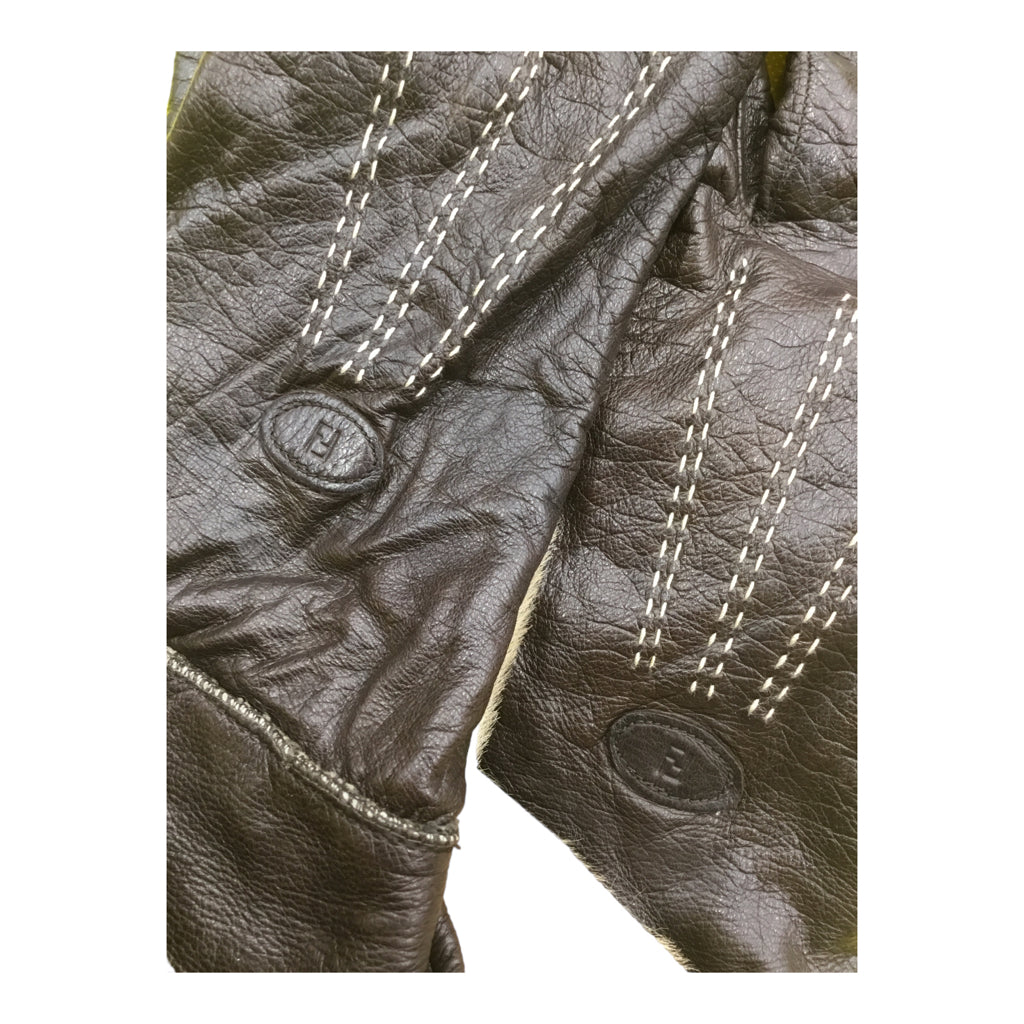 FENDI Gloves Womens Size 8 Brown 50% Cashmere Winter