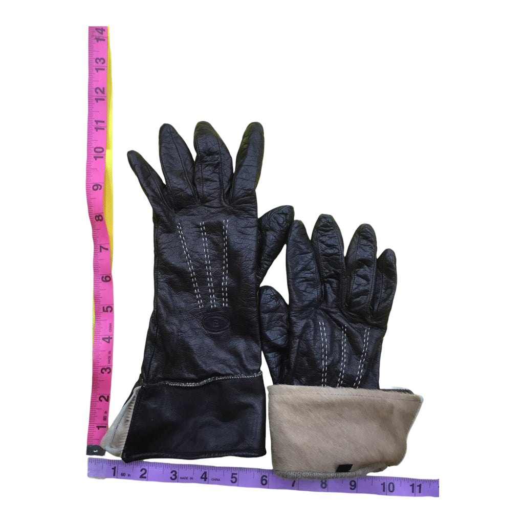 BROWN LEATHER GLOVES. FUR LINING