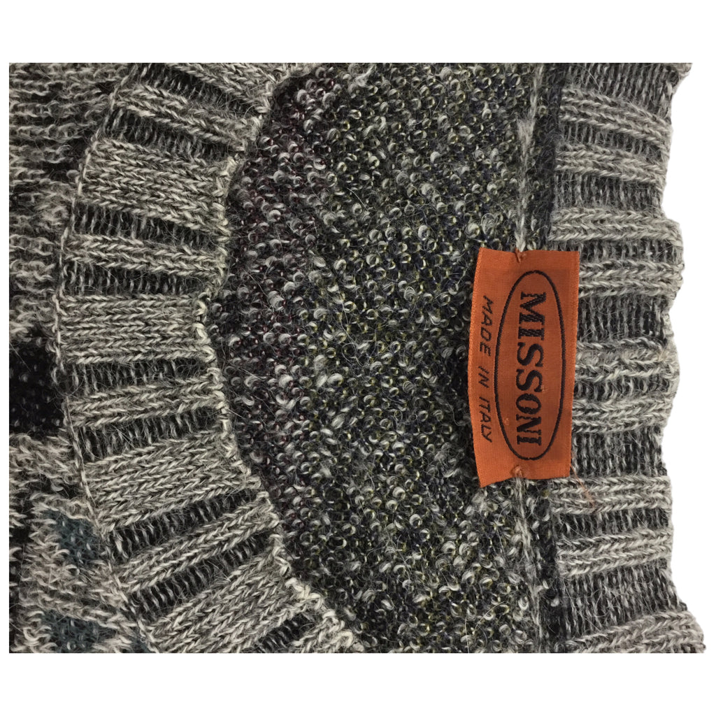 MISSONI Mens Wool Blend Alpaca Sweater Made In Italy Size 52 Gray Grey Black VTG