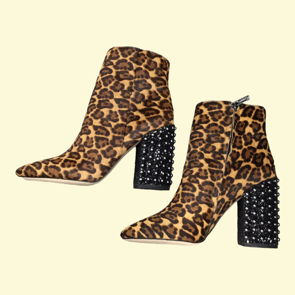 NIB JESSICA SIMPSON Cheetah Boots Black Studded Heel 9 M