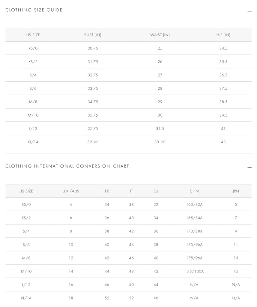 *Model is wearing a size Small and her measurements are 5’10”, 32” bust, 23” waist, 34” hips