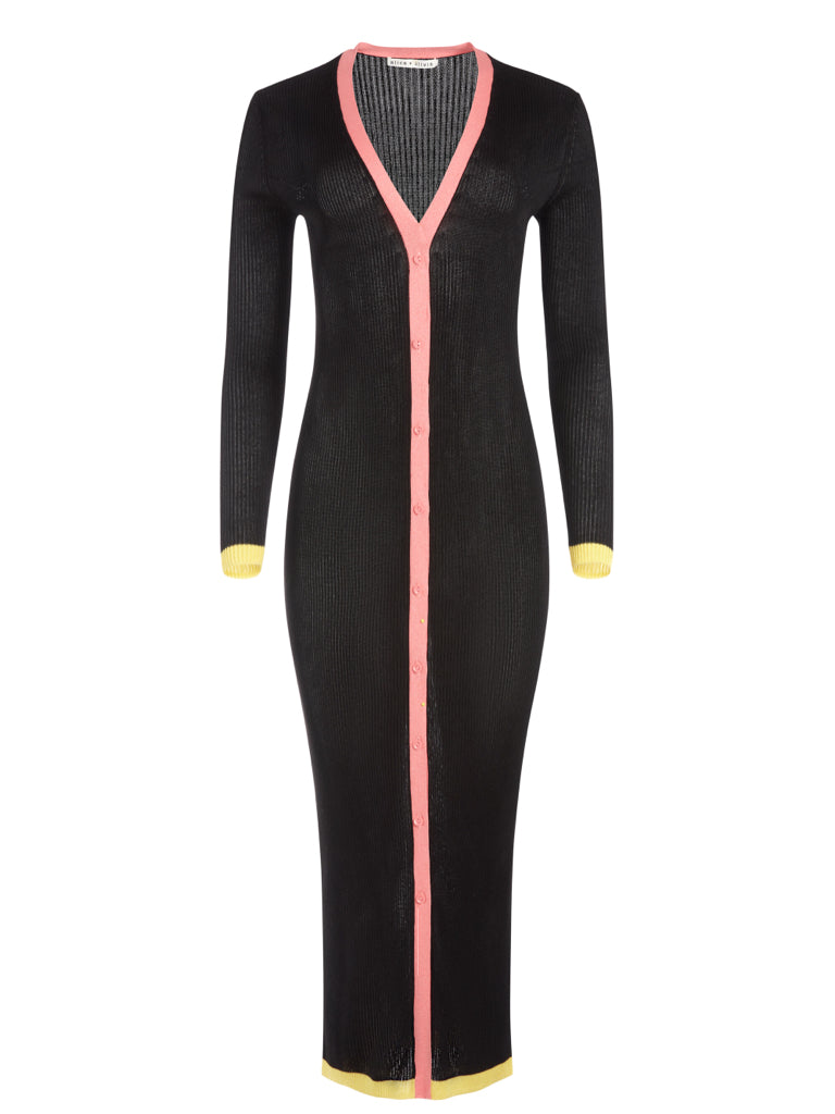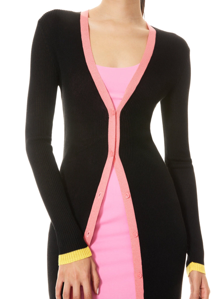 NWT Alice + Olivia Aria Slim Long Black Colorblock Trim Cardigan Wms Sz S
