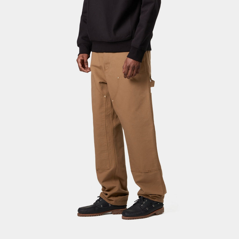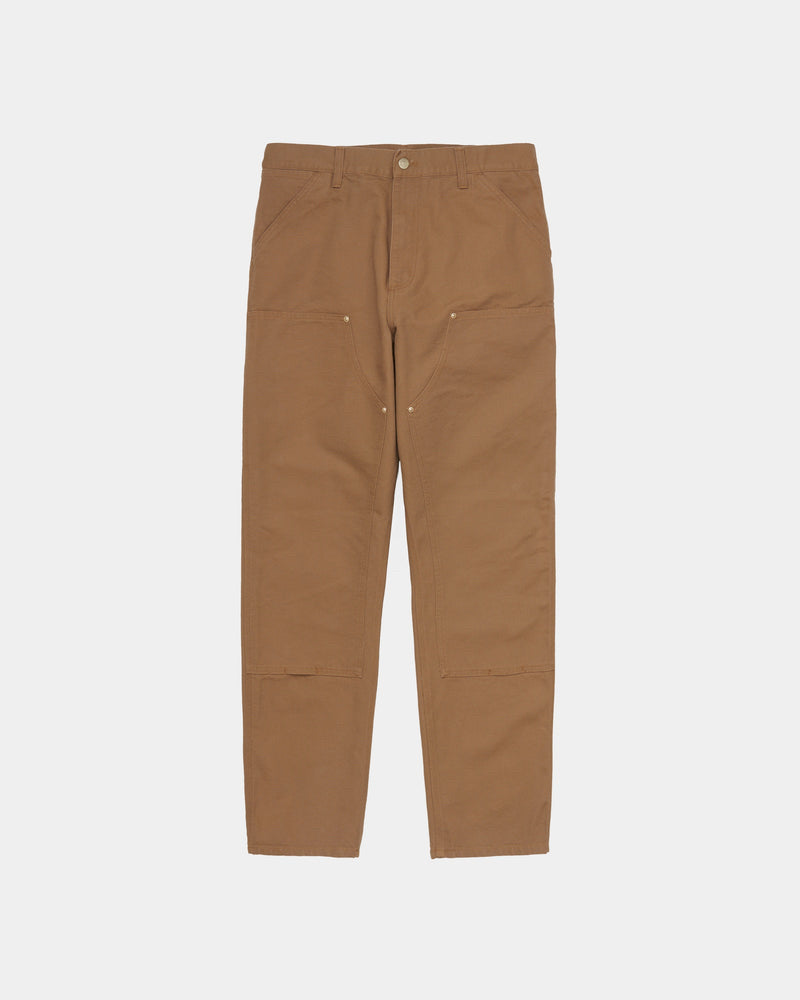 The Double Knee Pant draws inspiration from classic work pant silhouettes, and is constructed in our robust 12oz Dearborn Canvas, which will slowly soften with wear over time. This garment has a regular waist and is cut in a relaxed straight fit, featuring double-layer knees for extra reinforcement. Bartack stitching at vital stress points make the pant more robust. Rivet details, tool pockets, and a hammer loop are further nods to the style's utilitarian influences.