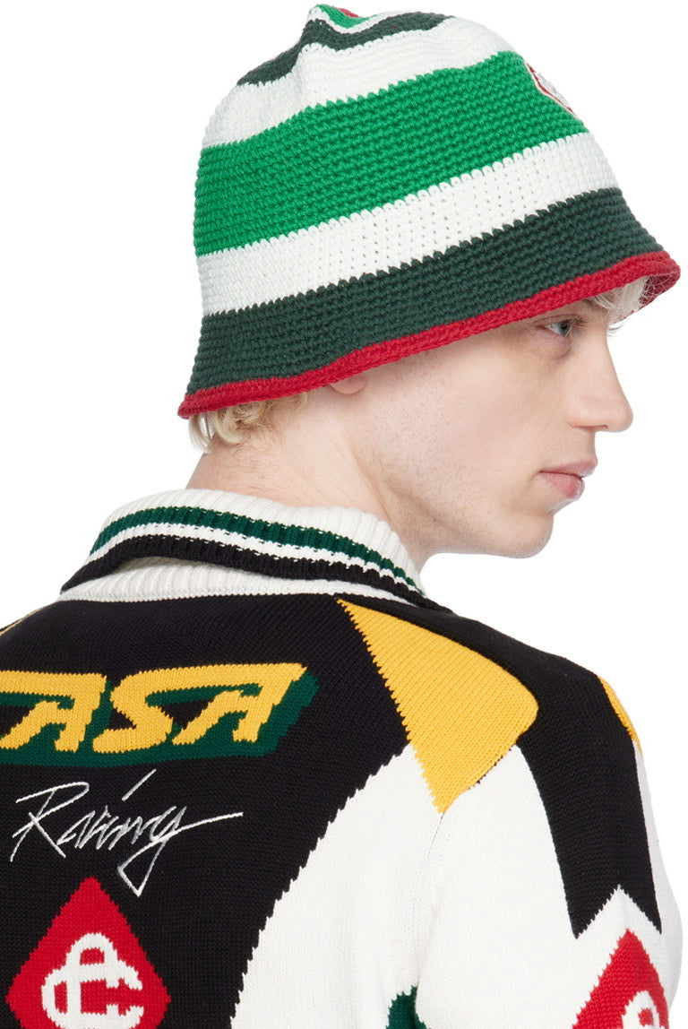 Crocheted cotton bucket hat in green and white. · Stripes throughout · Embroidered logo patch at face Supplier Color: Green/White Gender: Mens SKU: 241195M140007Â