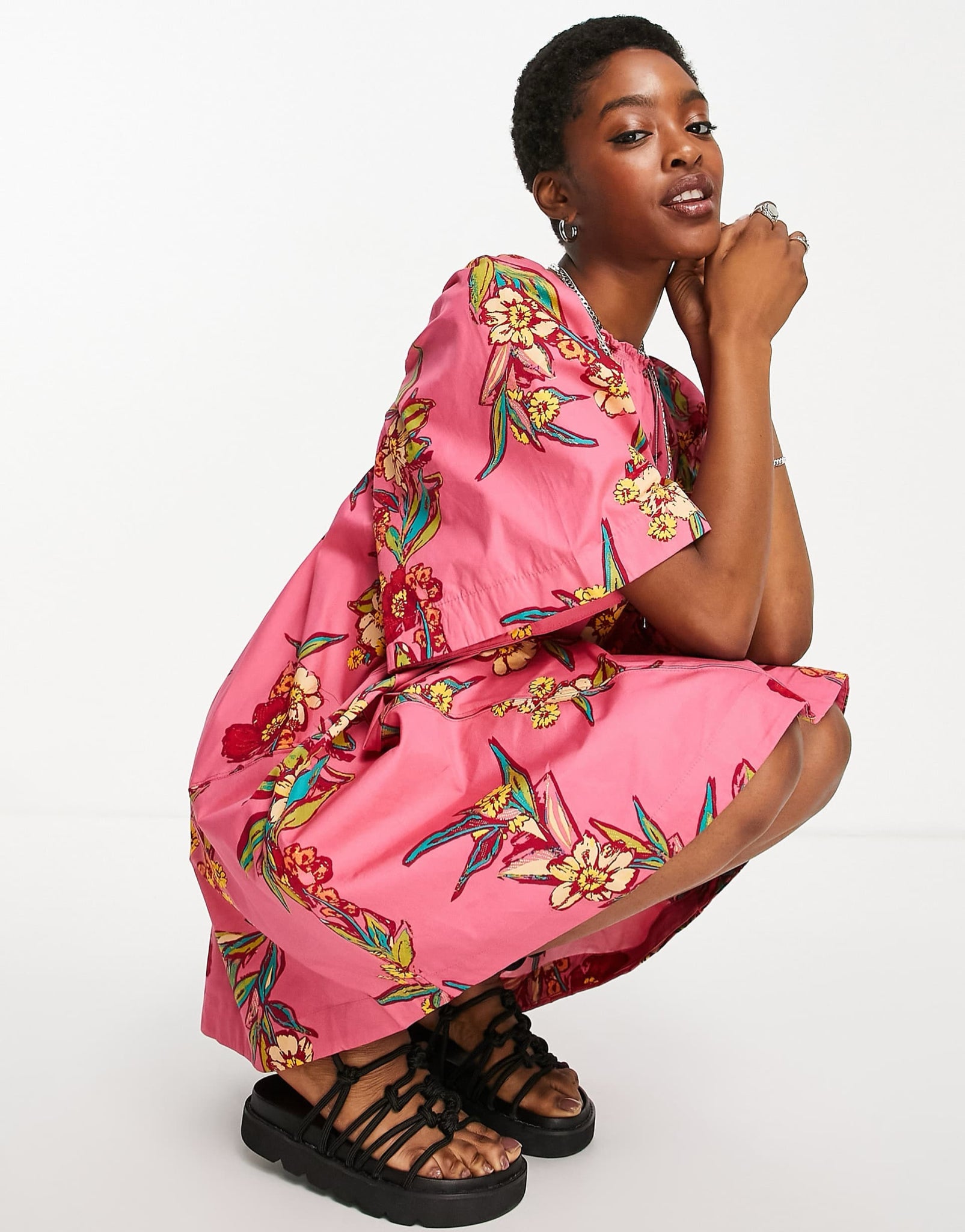 NWT Free People Jodie Printed Tunic Sunrise Combo Floral Leaf Print Wmn Sz XS