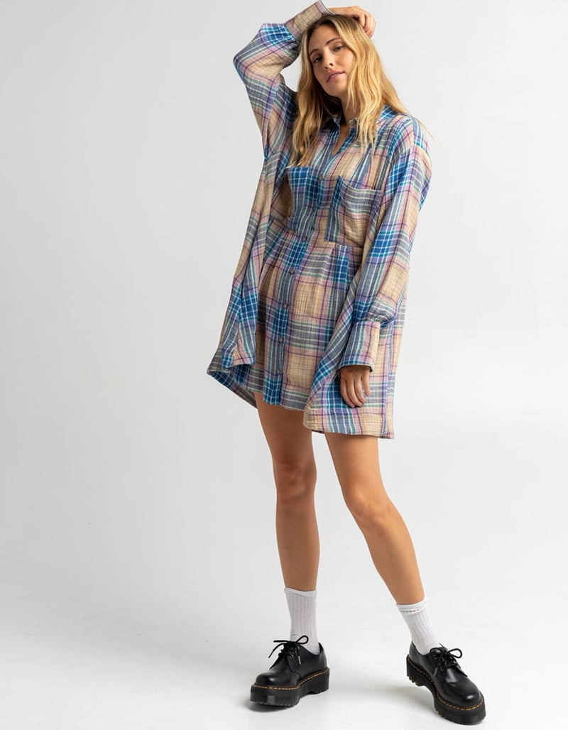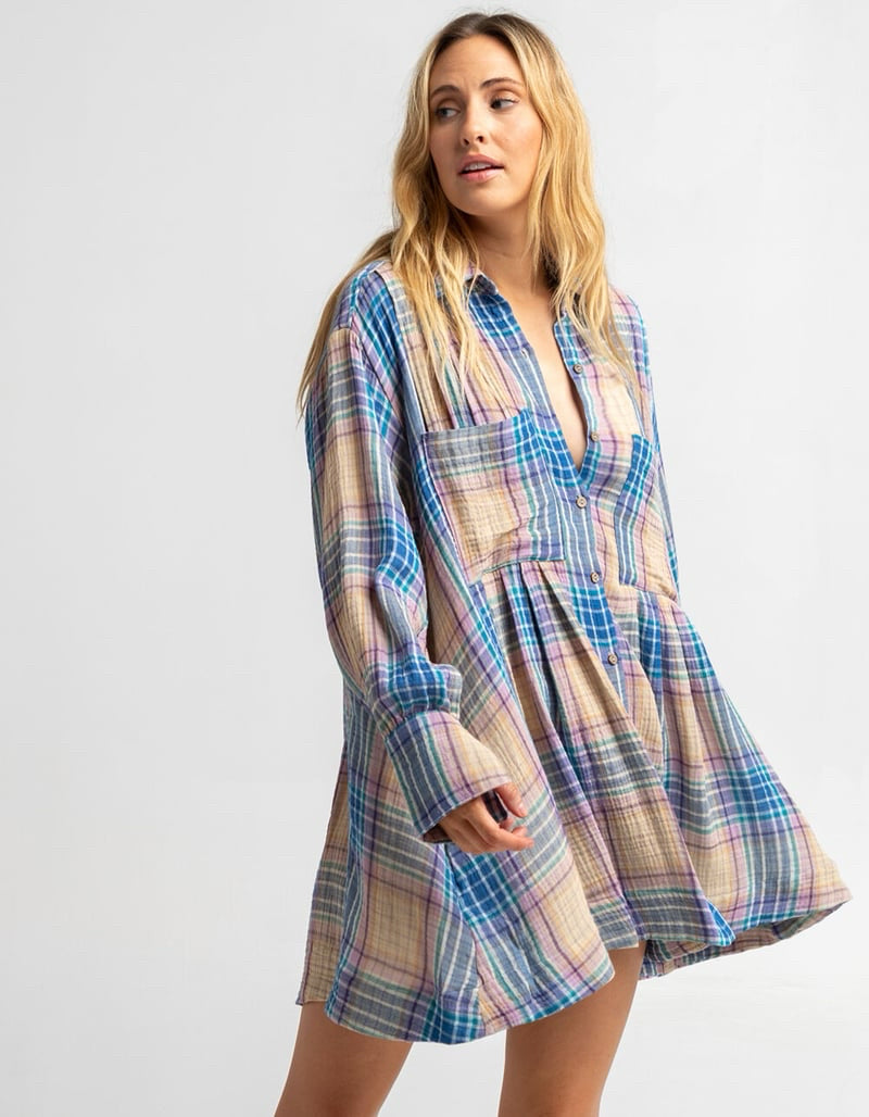 NWT Free People Voyage Multi-Color Plaid Shirt Dress Wms Sz XS