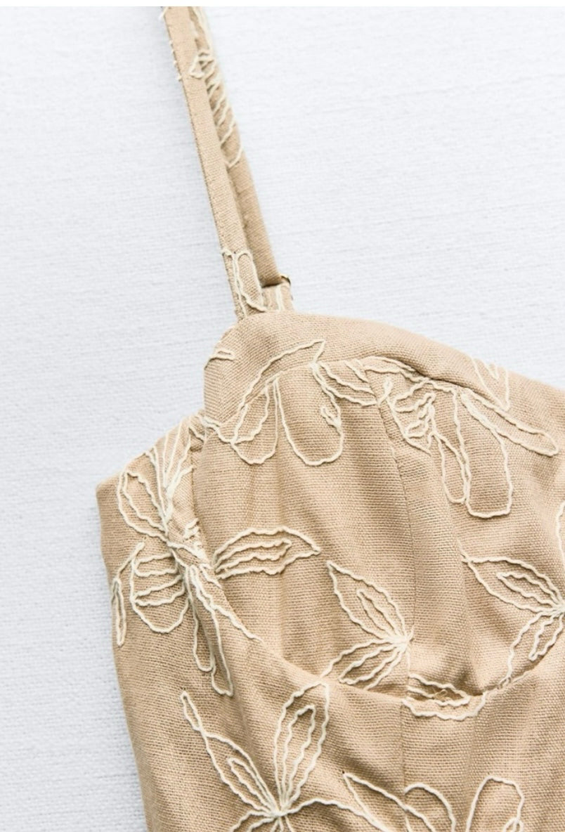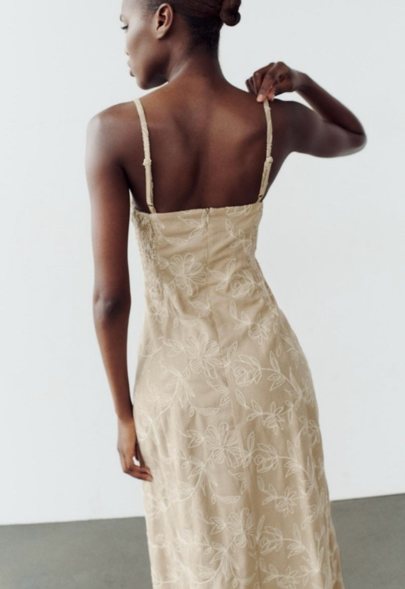 NWT Zara SS24 Embroidered Floral Midi Dress Ecru/Beige Wmns Sz M 3447/682