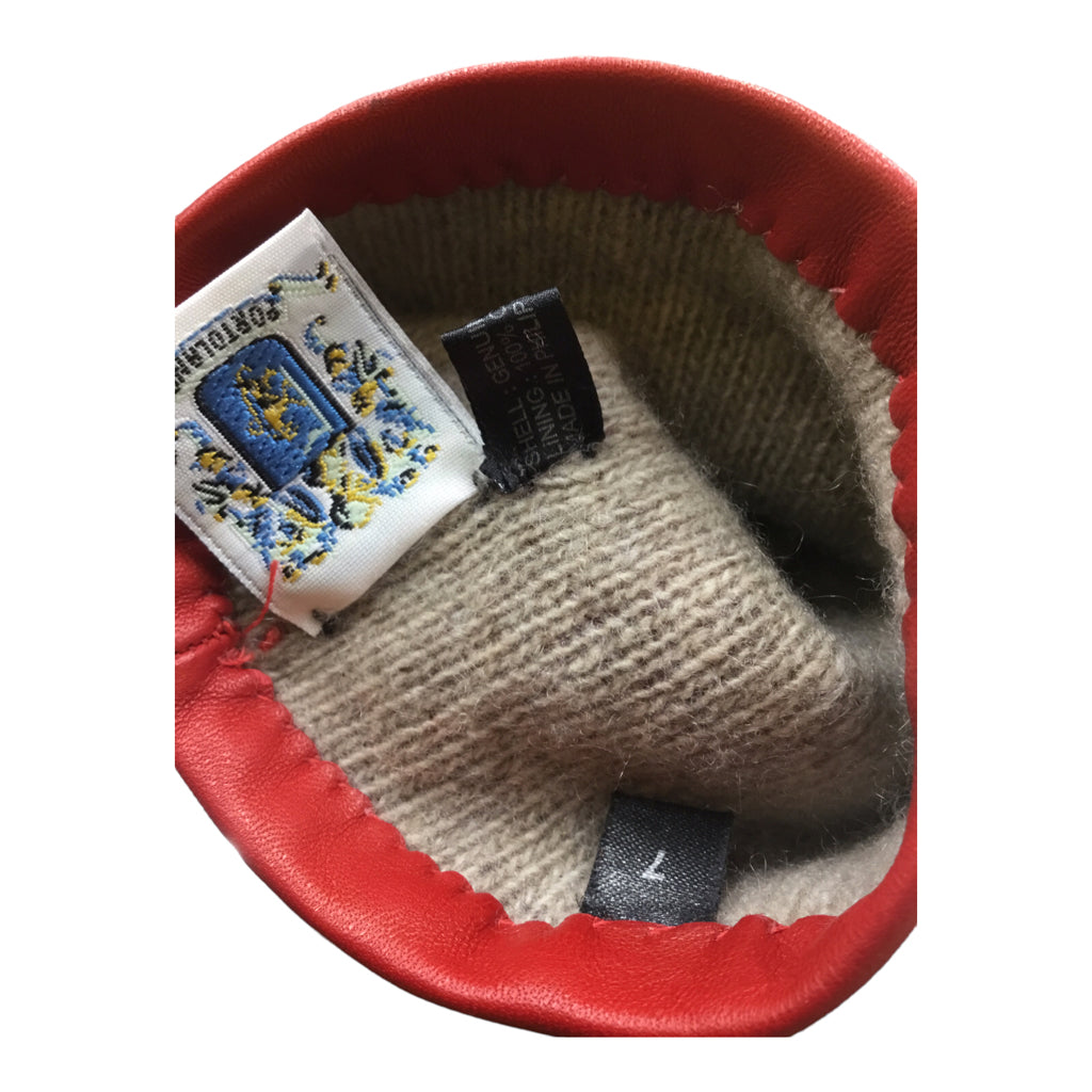 PORTOLANO Gloves Womens Size 7 Red 100% Genuine Leather Lining Winter