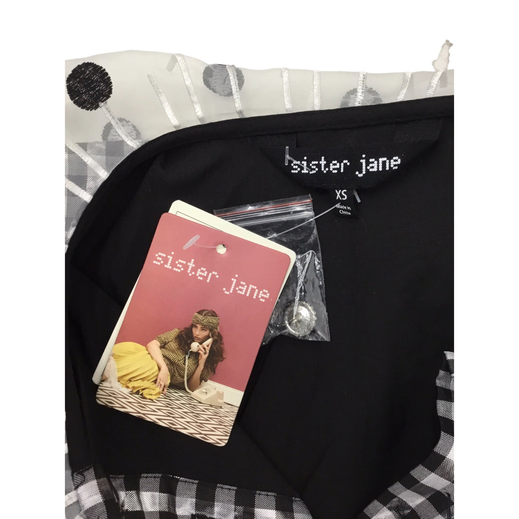 SISTER JANE Glint Checkered Smock Dress Shirt Sz Xs Black Silver NWT Designer