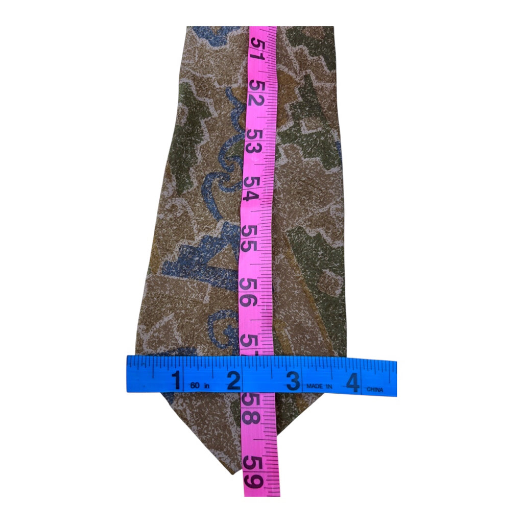 Vtg Pure Silk Fendi Brown Blue Green Design Mns Tie