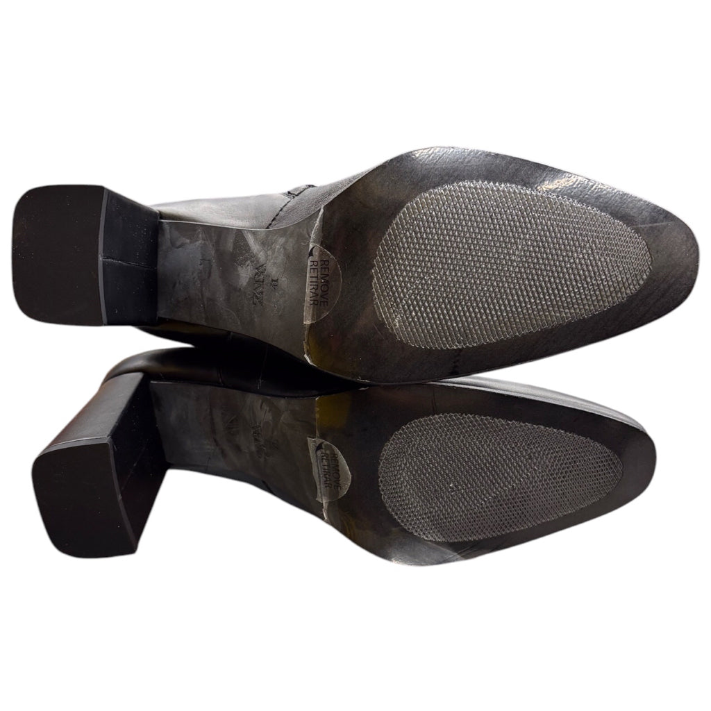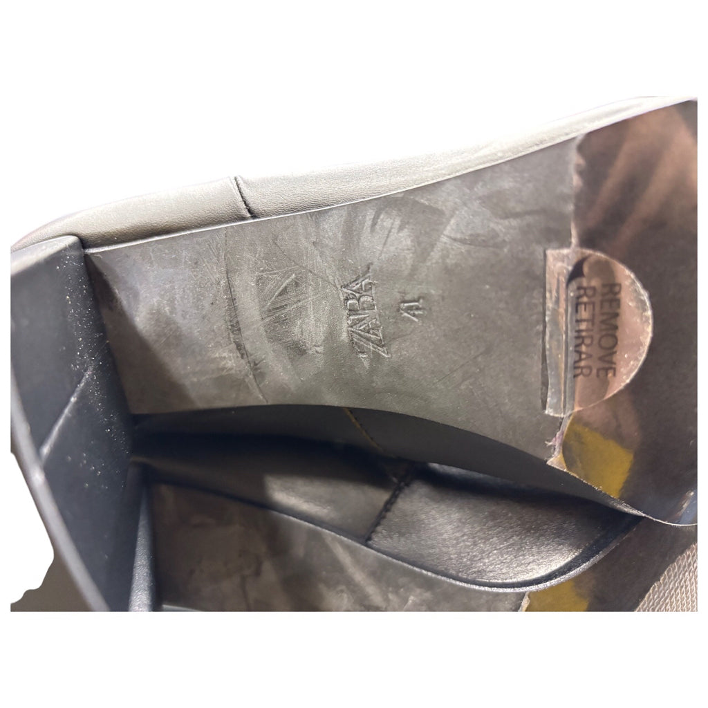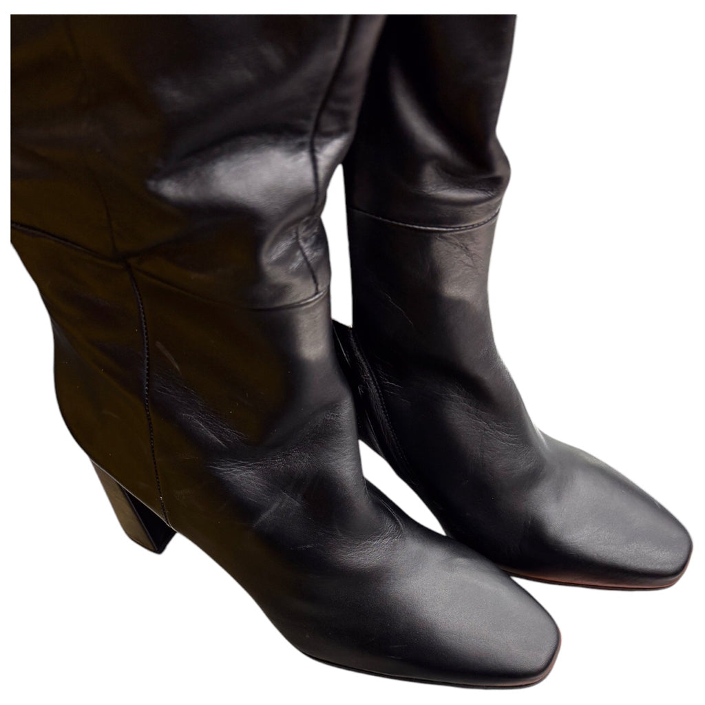 ZARA Y2K Black Leather Chunky Heel Knee Calf High Pointed Toe Sz 41 NWT